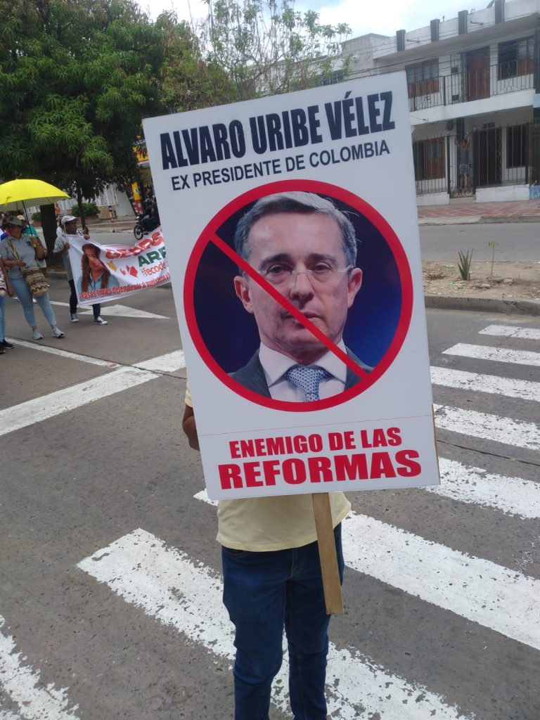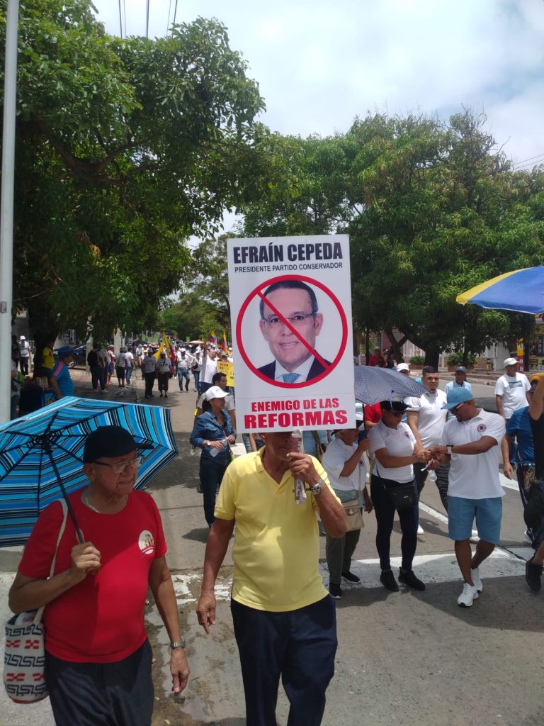 También expresaron su rechazo a voces de la oposición que se pronuncian contra las reformas del Gobierno, los políticos más cuestionados y rechazados por los marchantes fueron Álvaro Uribe Vélez, el presidente del Conservatismo, César Gaviria, Efraín Cepeda Sarabia y la presidenta del partidos de la U, Dilian Francisca Toro, María Fernanda Cabal y Paloma Valencia, Andrés Pastrana, todos miembros de la oposición. Habían pancartas contra el Fiscal General de la Nación, Francisco Barbosa, la Procuradora Margarita Cabello, por indebida intervención en política, a quienes le gritaban: !Fuera, fuera!