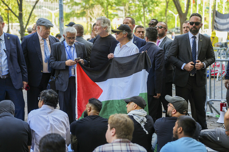 Los miles de manifestantes se concentraron en inmediaciones a Times Square, lugar emblemático de Manhattan, y se disponían a dirigirse hacia el edificio sede de la ONU, el presidente Gustavo Petro participó activamente en esta marcha junto con Roger Waters, el músico, compositor y activista británico, cofundador de la Banda de Rock progresivo Pink Floyd.