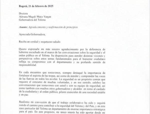 De hecho, el excomandante del Ejército aseveró en la carta que «Para todos los efectos dejo constancia de que este ha sido un trabajo voluntario Mi contribución ha estado guiada exclusivamente por el interés de servir y aportar en la construcción de estrategias que fortalezcan la seguridad y la convivencia».