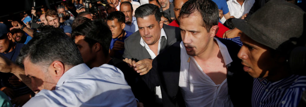 Tras su arribo a Venezuela, el llamado presidente interino Juan Guaidó, fue recibido a punta de puño y «patá» en el aeropuerto Simón Bolivar de Caracas. Un grupo bastante numeroso de Chavistas y defensores del gobierno de Maduro, agredieron física y verbalmente a Guaidó y a su esposa Fabiana Rosales, también resultaron agredidos algunos diputados que lo acompañaban en ese lugar.