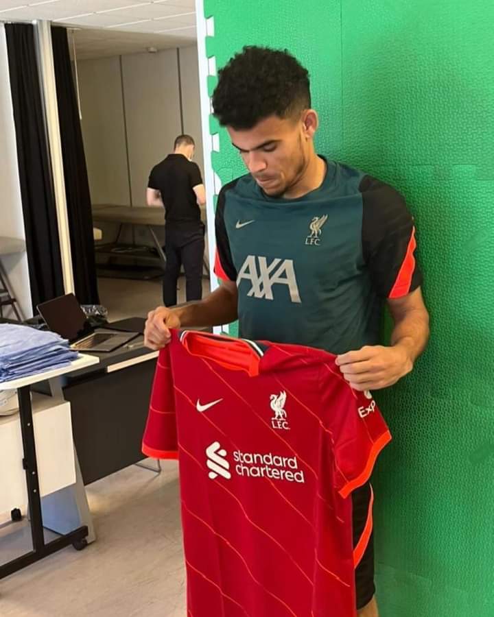 «El Guajiro» Luis Díaz será oficializado este lunes como nuevo jugador de Liverpool, sin embargo, se han colado algunas imágenes, en la cual; aparece el jugador colombiano luciendo la camiseta del equipo inglés.
