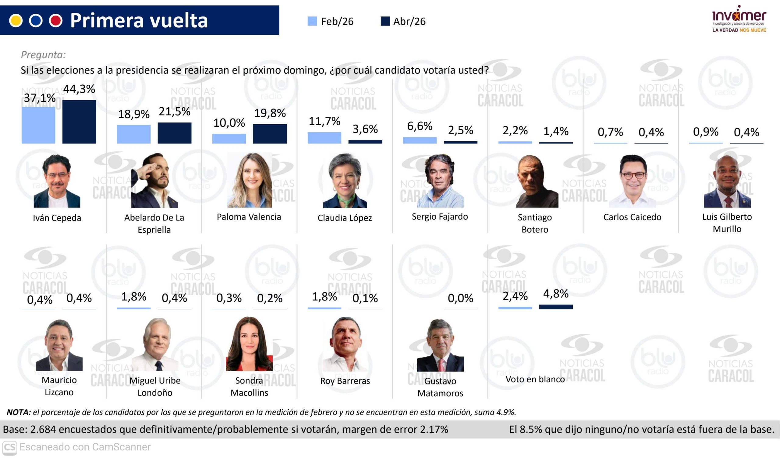 Encuesta INVAMER da ganador a CEPEDA con 44.3% a 30 días de la contienda