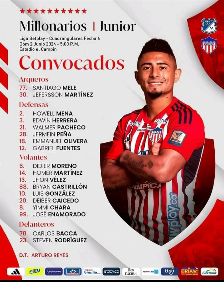 Por su parte el cuadro barranquillero presenta 3 novedades en su nómina, salen Victor Cantillo (lesionado) Roberto Hinojosa y Vladimir Hernández.