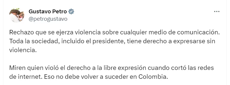 Por su parte el presidente Gustavo Petro, manifestó en su cuenta de X:
