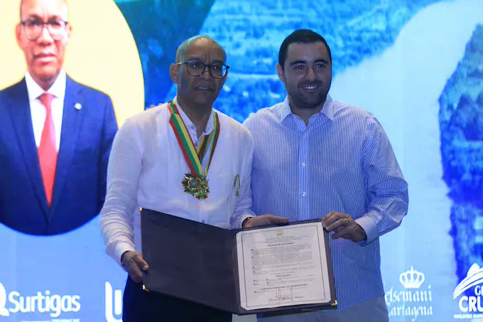 El cuestionado e investigado gobernador de Bolivar Yamil Arana entrega al presidente de la Corte Suprema de Justicia la condecoración de la orden Rafael Núñez, en el grado de Comendador.