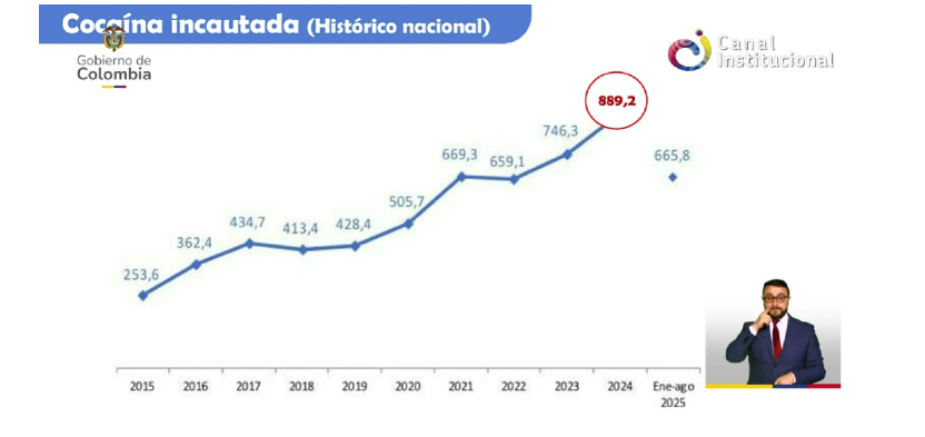Asimismo, el mandatario sostuvo que la erradicación voluntaria avanza con resultados crecientes. En 2024 se alcanzaron 2.711 hectáreas y en 2025 ya suman 22.433, para un total de 25 mil hectáreas eliminadas bajo su gobierno.