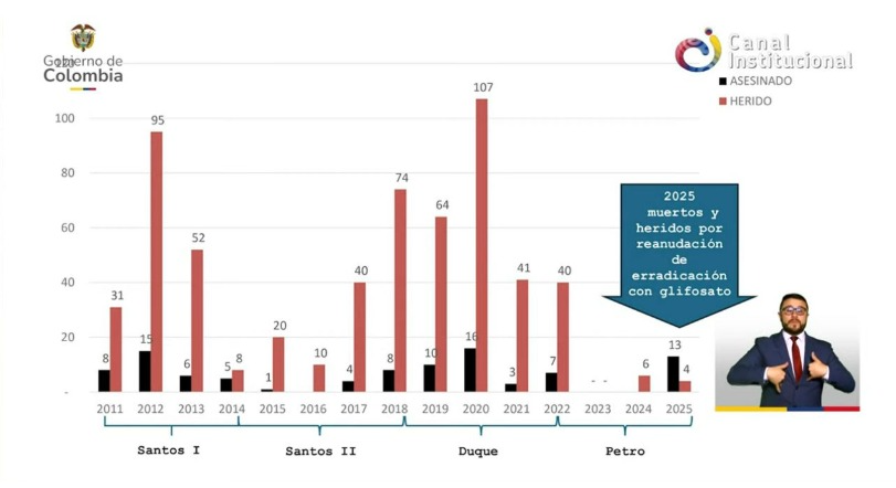 Recordó que en esas administraciones se aplicó la erradicación forzosa, incluso con glifosato, medida que la Corte Constitucional prohibió.